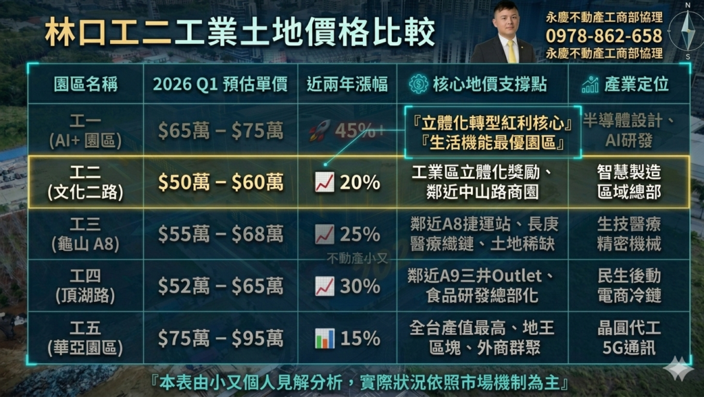 老闆們,我們來算一筆帳。小又整理了 2026 Q1 林口各區行情對比: