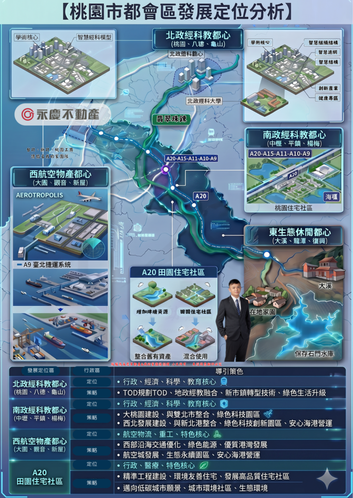 現在,桃園正在經歷一場前所未有的「體質大翻轉」。政府透過「四大都心」的發展定位,重新賦予了每個行政區明確的靈魂。